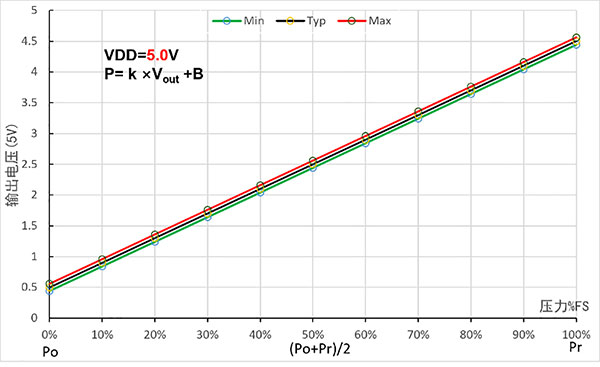 | Maks pressure output(0℃ to 85℃)@ VS = 5.0V | V FSO | 4.44 | 4.5 | 4.56 | VDC |